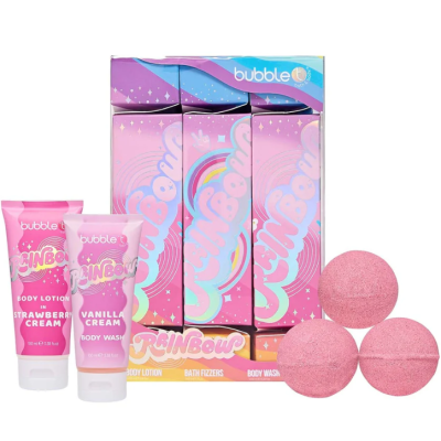 Bubble T Rainbow 3 Cracker Gift Set (Body Lotion, Body Wash & Pink Bath Fizzers)