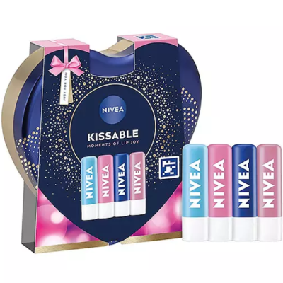 Nivea 4pcs Kissable Moments of Lip Joy Lip Balm Heart Tin Gift Set