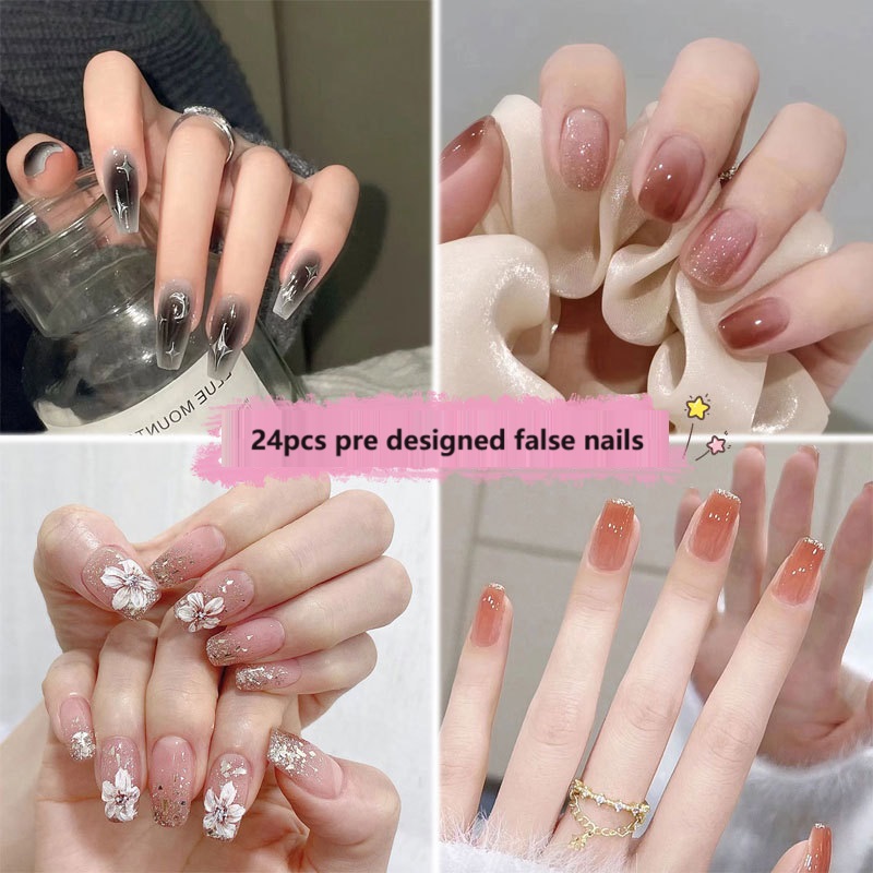 24pcs Pre-Designed False Nails Boxed with Glue (various styles) wholesale