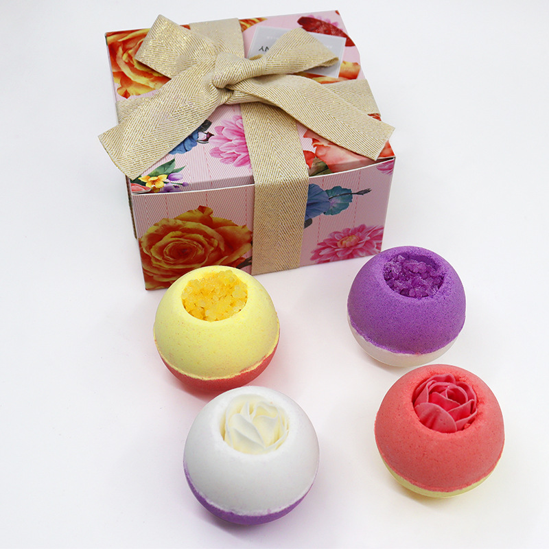4pcs Floral Bath Bombs Boxed Gift Set (with essential oil and natural sea salt) wholesale