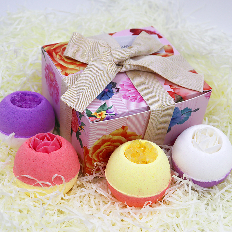 4pcs Floral Bath Bombs Boxed Gift Set (with essential oil and natural sea salt)