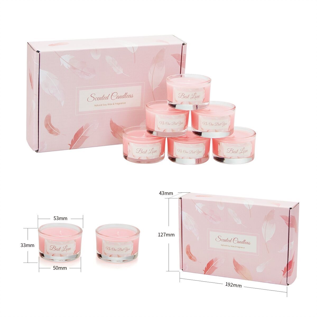 6pcs Pink Natural Soy Wax & Fragrance Scented Candle Gift Set wholesale