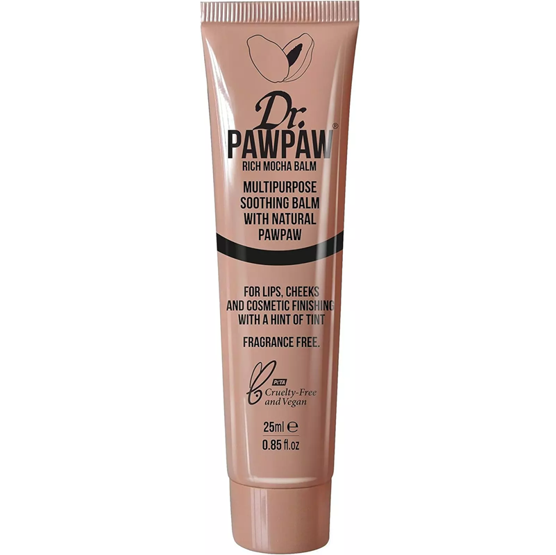Caress your lips with juicy hydration with a slick of the Dr. PAWPAW Rich Mocha Balm. This deep nude shade is perfect for all skin tones, creating a sophisticated look. The nourishing formula is enriched with the signature award-winning blend of Pawpaw or Papaya Fruit, Aloe Vera and Olive Oil with added colour pigment. The lip balm moisturises while delivering bold colour and can be built up from a subtle wash of pigment to a high-impact full coverage colour. This shade can also be applied to the cheeks for a dewy sun-kissed flush. This versatile balm is the perfect product to take you from beach to bar.