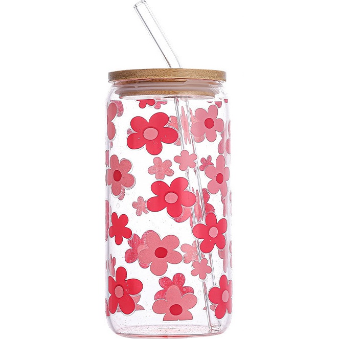 Glass Cup with Lid, Straw and Straw Brush Set – Pink Daisy wholesale