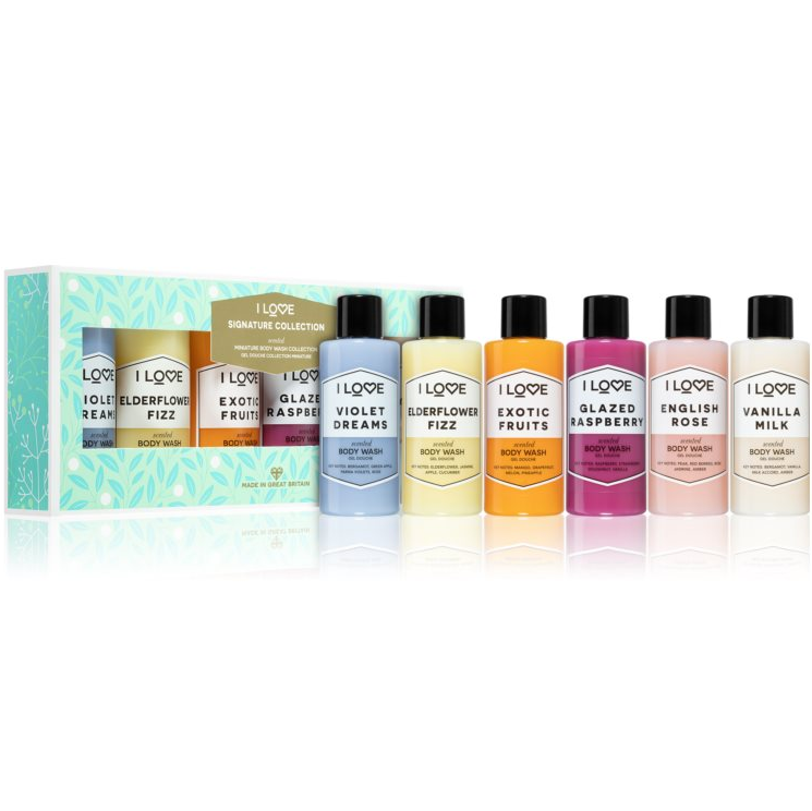 This Signature Scented Selection Box contains 6 x 100ml beautifully scented Body Washes in the following scents; Elderflower Fizz, Vanilla Milk, Violet Dreams, Glazed Raspberry, Exotic Fruits and English Rose.This body wash gently transforms into rich & creamy foam. It contains natural fruit extracts and skin loving moisturisers, including Pro Vitamin B5, to leave your body feeling cleansed, moisturised and silky smooth.
