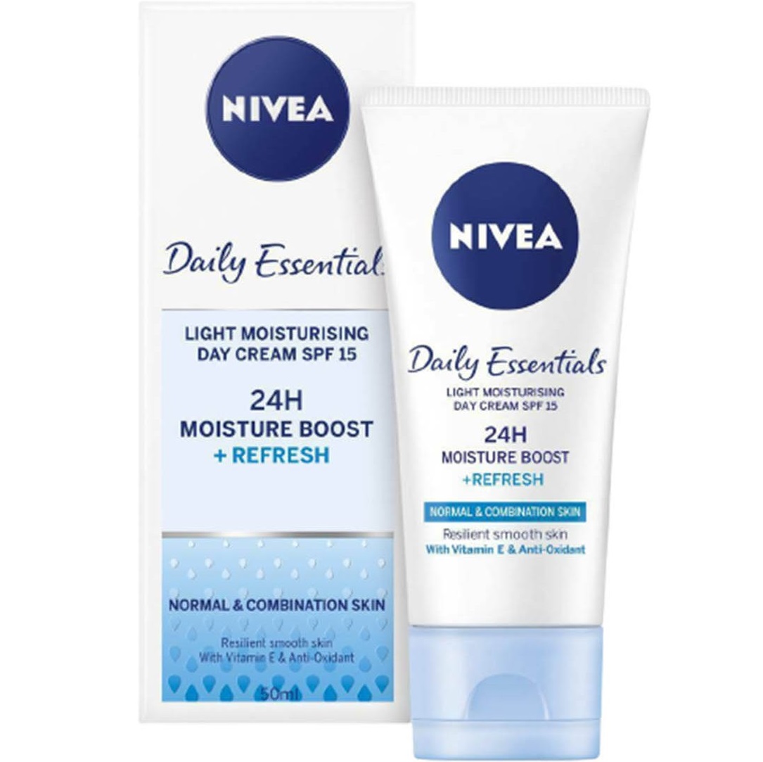 NIVEA Daily Essentials Light Moisturising Day Cream SPF 15 is a moisturiser that refreshes the skin, helps protect from damage caused by the sun and external influences, and enhances the skin’s natural moisture and premature ageing. Vitamin E, gives your skin the intensive moisture it needs to support its natural balance. Hydra IQ supports your natural moisturisation.
