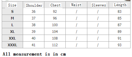 Chest 100cm 104cm 112cm