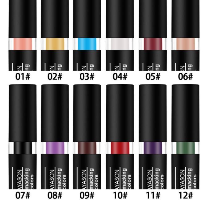 | shade | 03 Sky Blue, 04 White, 07 Black, 10 Red, 11 Purple, 12 Olive Green, 02 Yellow, 08 Light Violet, 01 Nude Orange, 06 Pale Nude, 05 Cherry, 09 Mulberry |