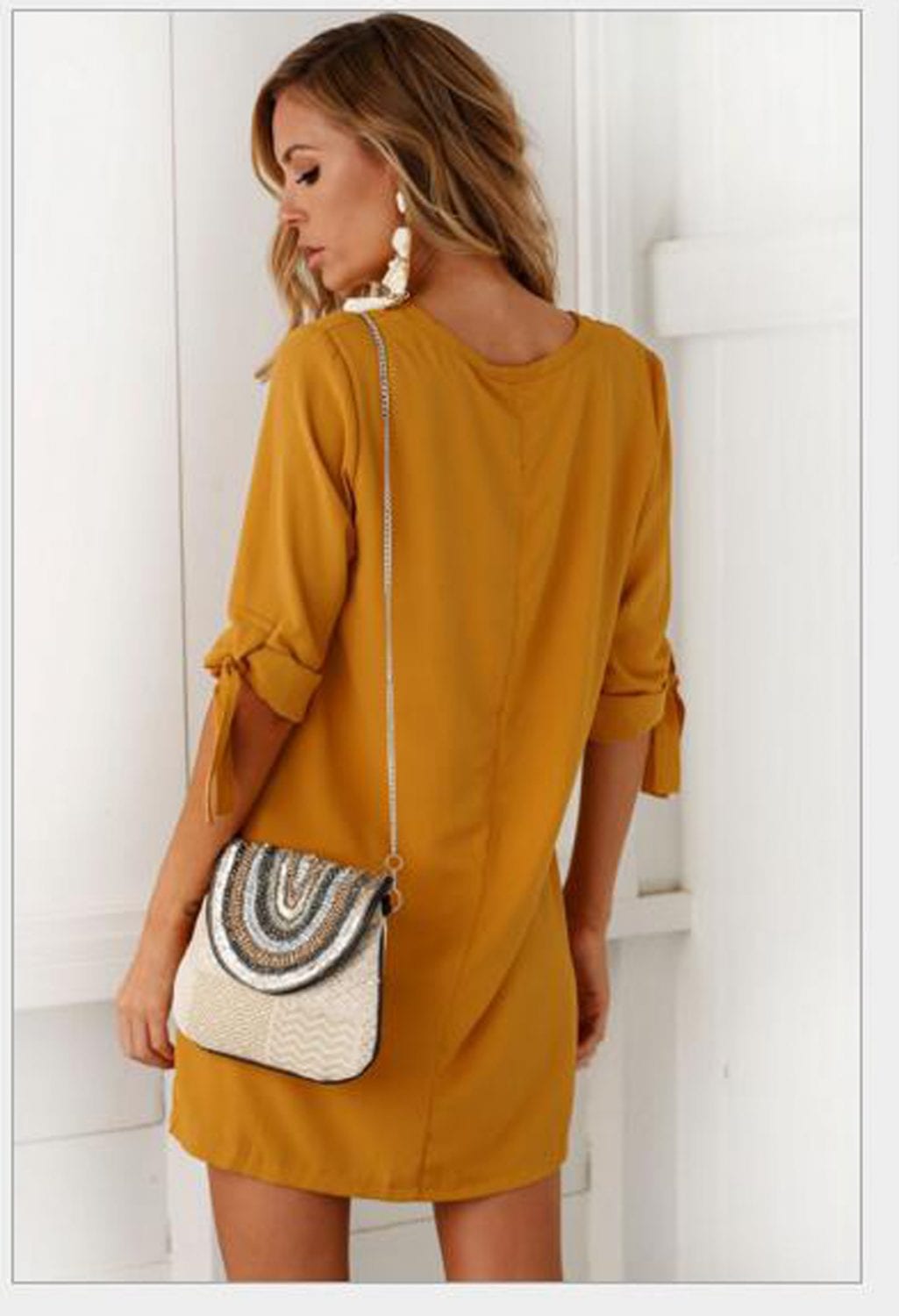 A lovely chic short dress comes with ruffle detailed sleeves. It also can be worn as a long top with jeans and leggings.